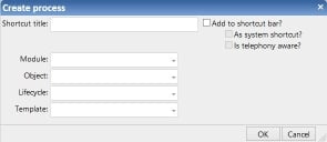 Do not select the Add to shortcut bar? check box if you want to log a new instance of a process without adding a shortcut for the process to the shortcut bar.