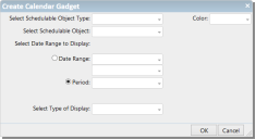 The Calendar gadget enables you to see the availability of scheduled items such as services or analysts.