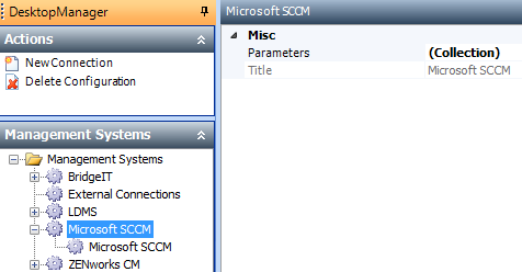 Desktop Manager needs to be configured so that the default SCCM connection connects to your Microsoft SCCM database.