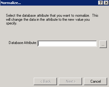 Atributo de base de datos: Seleccione el atributo de la base de datos que desee normalizar con esta regla. Haga clic en el botón de puntos suspensivos (...) para seleccionar el atributo en el navegador de atributos.