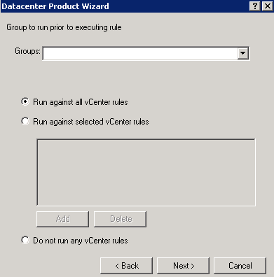 Observará que la página siguiente le permite ejecutar esta regla en las reglas de vCenter. En este caso, va a ejecutarla en todas las reglas configuradas de vCenter.