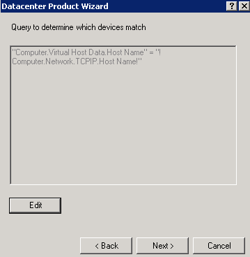 Para comprender mejor cómo funcionan estos tipos de reglas, puede observar la regla de producto de Datacenter que se envía con DTS de manera predeterminada. Abra la carpeta Productos de Datacenter > Todas las reglas, haga doble clic en la regla Consolidación del entorno virtual de Datacenter de Microsoft Windows Server, y haga clic en el botón Sólo ver.
