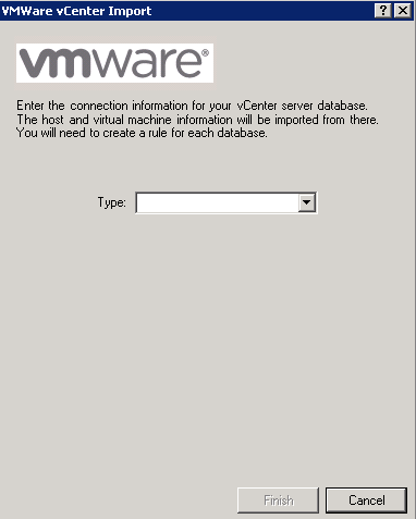 Puede utilizar esta regla para conectarse a la base de datos de vCenter e importar la información sobre los servidores de host ESX y los dispositivos virtuales asociados a la base de datos del inventario. Es necesario crear una regla para cada una de las bases de datos de vCenter.