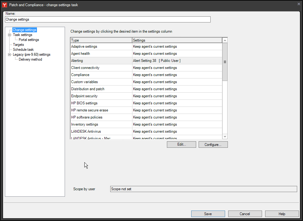 Para implementar un reglamento en un dispositivo administrado, primero debe instalar un agente de administración en el dispositivo. Cuando implementa el agente de administración estándar, el reglamento predeterminado se instala en el dispositivo, pero se puede seleccionar a éste o a cualquier otro reglamento disponible para que sea instalado en el dispositivo por el agente de administración. Tras completar la configuración del agente, puede actualizar los reglamentos predeterminados o implementar reglamentos nuevos mediante la programación de una tarea de alerta.