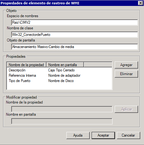- Espacio de nombre: El espacio del nombre de WMI. Normalmente este es