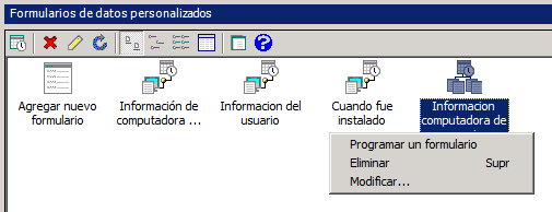 - En la ventana Formularios de datos personalizados, haga clic en el botón Varios formularios de la barra de herramientas.