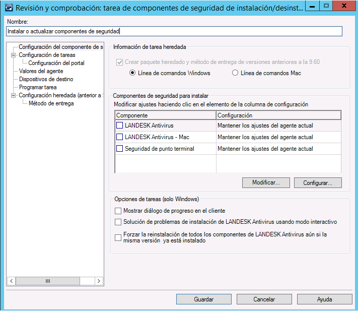 Si desea instalar o actualizar componentes de seguridad, también puede hacerlo mediante una tarea aparte.