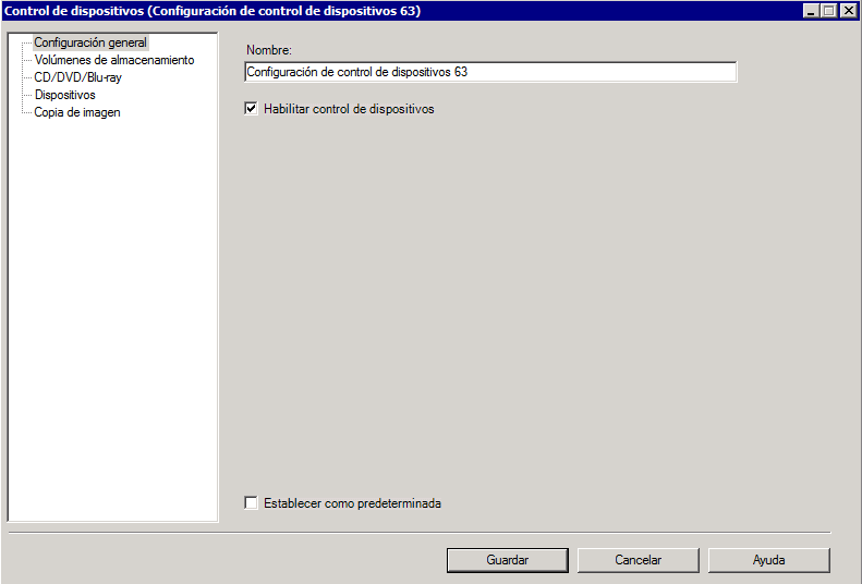 - En la página Políticas predeterminadas, compruebe Control de dispositivos y seleccione la configuración que desee aplicar.