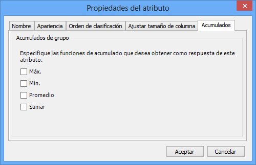 Las casillas de verificación disponibles dependerán del tipo de datos del atributo seleccionado. Por ejemplo, no es posible calcular una suma de cadenas de texto, la media o la fecha.
