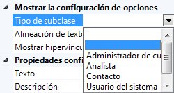 - En el cuadro Propiedades, establezca Mostrar hipervínculo como Verdadero y en la lista Tipo de subclase, seleccione la subclase que requiera el objeto.