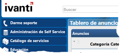 Con la barra de navegación situada a la izquierda de Self Service se accede a las distintas áreas de Self Service a las que tenga acceso.
