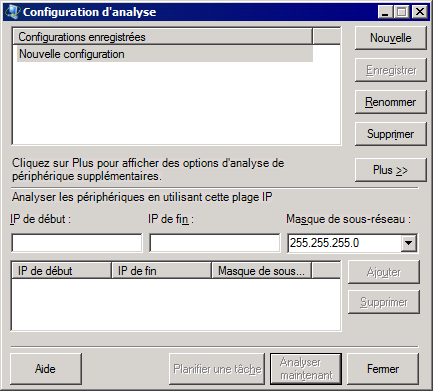 - Dans la fenêtre de découverte des périphériques non gérés (Outils > Configuration > Découverte de périphériques non gérés (UDD)), cliquez sur le bouton Analyser le réseau.