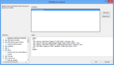 Le nom saisi apparaît dans la liste Modèles. - Dans le champ Texte, entrez le texte qui apparaîtra dans le rapport. Faites glisser les attributs à afficher dans le rapport de l'arborescence Attributs vers l'emplacement approprié dans le champ Texte.