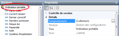 2. Sélectionnez l'objet en haut de l'arborescence Attributs, puis cliquez sur en regard de Comportements dans la grille des propriétés.