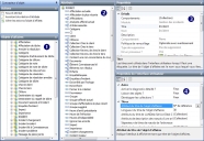 3 Grille des propriétés – Chaque objet d'affaires et chacun de ses attributs sont associés à un jeu de propriétés, qui sont affichées dans la grille des propriétés. Une aide contextuelle est disponible, pour chaque propriété, sous la grille des propriétés. Certaines propriétés étant prédéfinies, vous ne pouvez pas les modifier.
