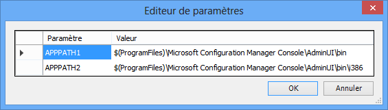 - Dans la colonne Valeur correspondant à SMSSERVER, entrez le nom du serveur central SCCM.