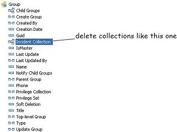 Collections (one-to-many relationships within the database) can cause performance issues. In particular, there have been instances of systems having Incident, Problem or Change collections on the System\Group object. These collections can have a very bad effect on performance, and we strongly recommend that you remove these collections.