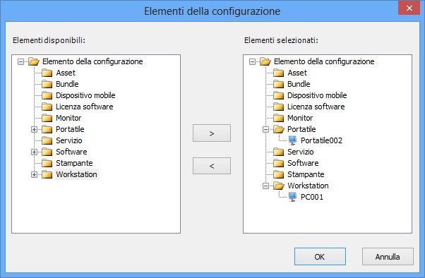 Viene visualizzata la finestra di dialogo Elementi della configurazione.