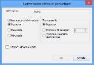 La finestra di dialogo Conversioni attributi predefiniti cambia in base al tipo di dati che si desidera trasformare. Ad esempio, se i dati rappresentano una stringa di testo o un numero.