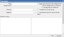 Verrà visualizzata la finestra di dialogo Crea query. - Digitare il Titolo collegamento da visualizzare nella barra dei collegamenti.