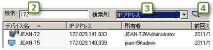 ステップ 2 テキストの検索ボックス、3 列リスト、4 検索ボタン