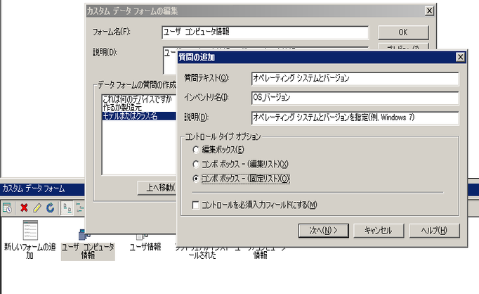 - [質問の追加] ダイアログ ボックスで、[質問テキスト]、[インベントリ名]、および [説明] の各フィールドに入力します。