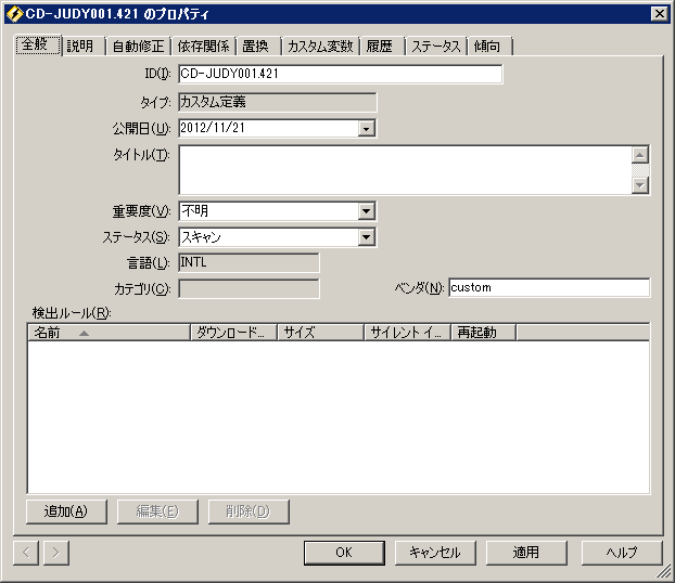 10.ユーザ定義の脆弱性においては、言語は自動的に [INTL (インターナショナルまたは言語に無関係)] として設定されます。これはこの脆弱性がどの言語バージョンのオペレーション システムやアプリケーションにも適用されることを意味します。