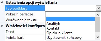 - W siatce Właściwości ustaw właściwość Pokaż hiperłącze na wartość Tak, a na liście Typ podklasy zaznacz wymaganą podklasę obiektu.