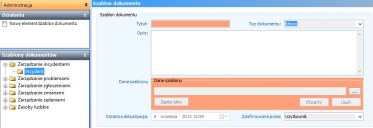 Poniższy proces opisuje tworzenie szablonu dokumentu Incydent. Szablon dokumentu dla innych modułów procesów tworzy się w podobny sposób.