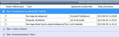 Wyniki zapytania o tej samej wartości określonego atrybutu można zgrupować. Na przykład może istnieć lista incydentów znajdujących się w różnych stanach:
