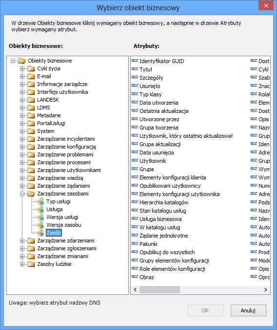 Zostanie wyświetlone okno dialogowe Wybierz obiekt biznesowy.