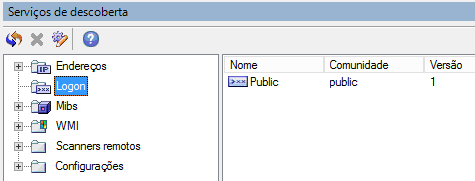 - Logon: Mostra as informações de login que os Serviços de Descoberta precisam conectar e analisar os dispositivos SNMP ou WMI habilitados. Para conexões SNMP, o mínimo necessário é a string da comunidade de leitura, embora informações adicionais podem ser necessárias dependendo do seu ambiente. Pode ser necessário criar vários logins. Para conexões WMI, você precisa configurar um logon do Windows.