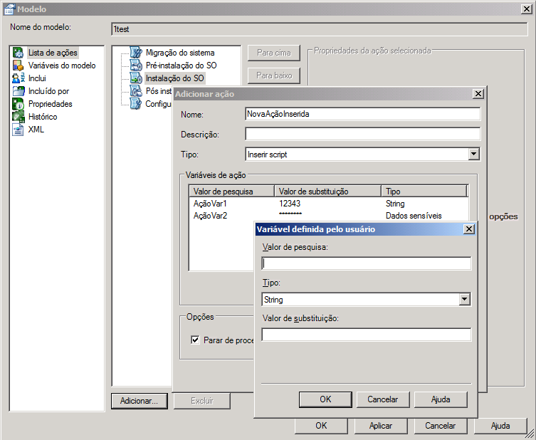 Para acrescentar uma variável de ação, clique em Adicionar.