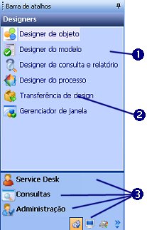 A Barra de Atalhos do Console fornece acesso fácil aos diferentes componentes.