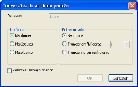A caixa de diálogo Conversões de atributo padrão muda dependendo do tipo de dados que você quer transformar. Por exemplo, se os dados são uma string de texto ou um número.