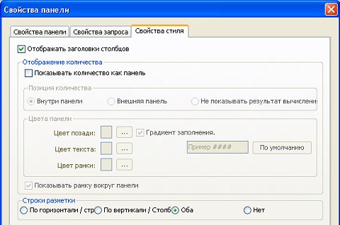 Для изменение свойств стиля панели подсчета: