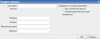 Не устанавливайте параметр Добавить на панель ярлыков?, если вам нужно регистрировать новый экземпляр процесса без добавления ярлыка процесса на панель ярлыков.
