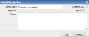 4. Введите заголовок ярлыка, который должен отображаться на панели ярлыков, и подсказку, которая будет появляться при помещении указателя мыши над ярлыком, а затем щелкните OK.