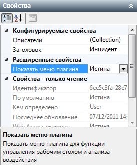 - Рядом со свойством Показать меню плагина выберите True.