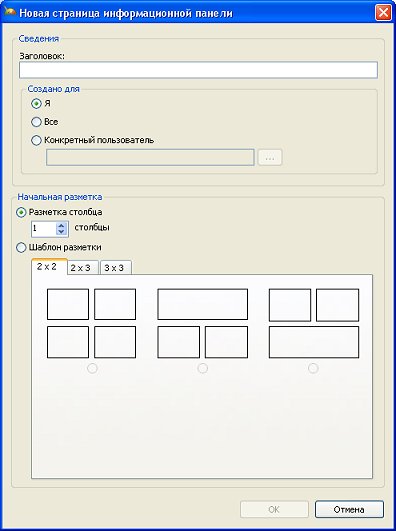 Создание системной и персональной информационная панелей выполняется подобным образом. В следующей процедуре представлено, как создать персональную информационную панель.