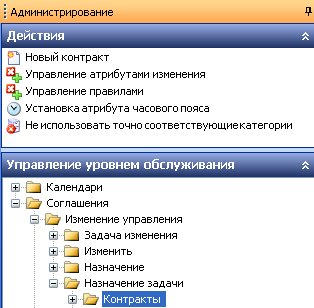 - В компоненте Администрирование разверните дерево Управление уровнями обслуживания.