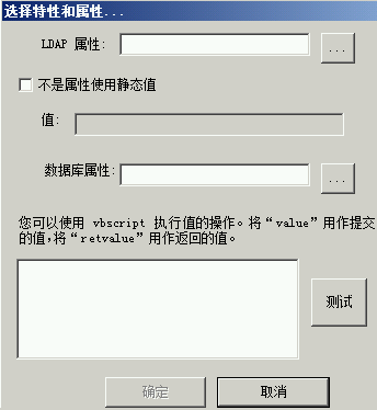 VBScript 文本框:可以使用 VBScript 修改返回的数据(可选)。单击测试按钮验证 VBScript 能否正常工作。