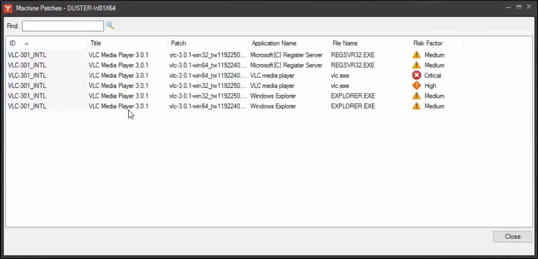 - 中等:选定的修补程序中至少有一个会对此应用程序产生直接影响,但用户反馈代理还未收集到任何关于所选修补程序损坏此应用程序的报告。 由于修补程序和应用程序之间存在直接依赖关系,建议在部署修补程序之前测试此应用程序。