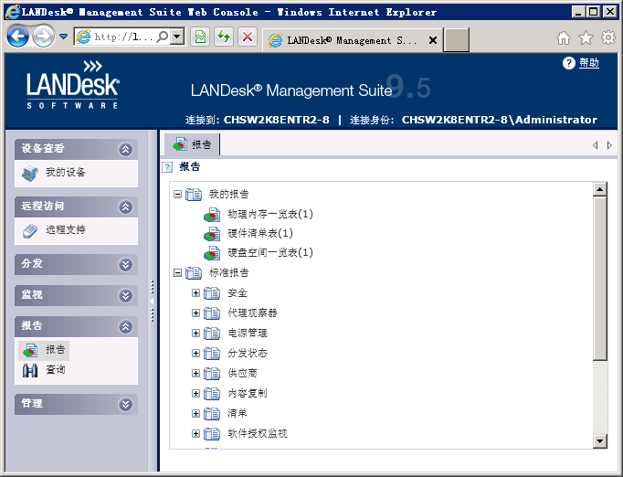 使用 Web 控制台时,可以使用 Windows 控制台中使用的报告,但查看和选择参数的方式略有不同。 在 Web 控制台中不能编辑或创建自定义报告,也不能在文件夹之间移动报告,但可以执行、查看和导出报告。