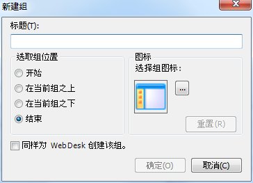 “名称”最多可包含 64 个字符。 - 选择希望出现快捷方式组的位置。在选择组位置组框中,选择所需的选项按钮。