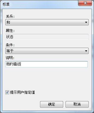 如果没有在“条件”对话框上键入说明,则查询的提示对话框会显示存储在数据库中的属性的名称。![]()