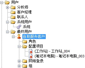 要查看有关与用户关联的 CI 的信息,可在“用户管理”树上双击。