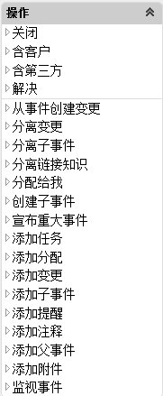 操作列表中有一个分隔符:分隔符之上的操作会使流程变为新的状态,直到最终完成;分隔线之下的操作称为可选操作,主要用于添加流程相关信息。大部分操作都有与其关联的窗口,但是有些操作没有(例如,启动和停止服务级别管理的时钟的操作通常就没有窗口)。需要完成所需的调查,并且填写相关窗口上的信息。
