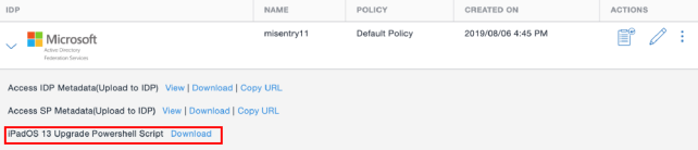 - For the ADFS listed, for iPadOS 13 Upgrade Powershell Script, click Download.