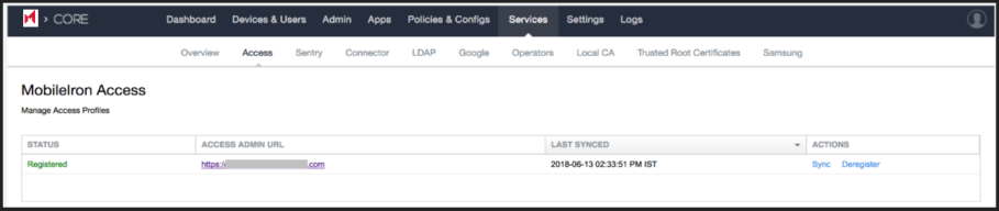 | 1. | In the Core Admin Portal, go to Services > Access. |